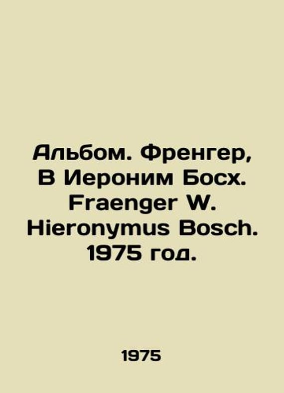 Album. Frenger, V Hieronymus Bosch. Fraenger W. Hieronymus Bosch. 1975./Albom. Frenger, V Ieronim Boskh. Fraenger W. Hieronymus Bosch. 1975 god. Dresden: VEB Verlag der Kunst. In German. Wilhelm Frenger (June 5, 1890-February 19, 1964), a German art historian. Frenger studied the era of the Peasant War in Germany and the mysticism of the late Middle Ages. He wrote important studies on the work of artists Jerg Rathgeb, Matthias Grunewald, and Hieronym Bosch. We have thousands of titles and often several copies of each title may be available. Please feel free to contact us for a detailed description of the copies available. SKUbd-d8d911d9e42d3894.