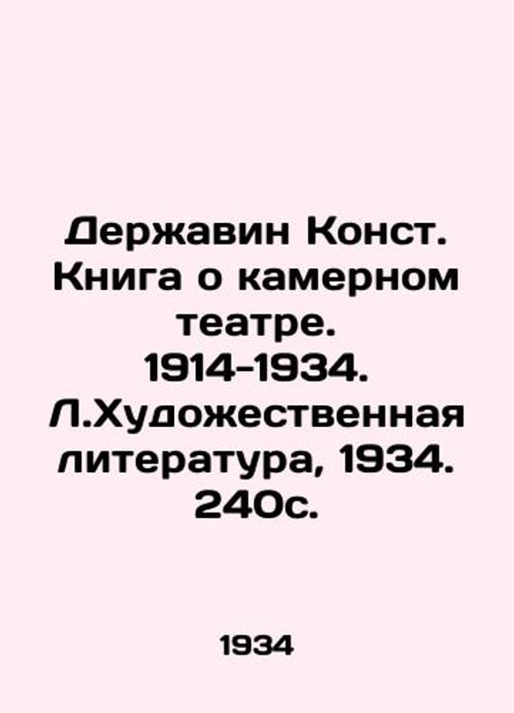 Derzhavin Const. Book on Chamber Theatre. 1914-1934. Art Literature, 1934. 240 p./Derzhavin Konst. Kniga o kamernom teatre. 1914-1934. L.Khudozhestvennaya literatura, 1934. 240s. Derzhavin Const. Book on Chamber Theatre. 1914-1934. Art Literature, 1934. 240 We have thousands of titles and often several copies of each title may be available. Please feel free to contact us for a detailed description of the copies available. SKUbd-ff4cd1b2c7d30141.
