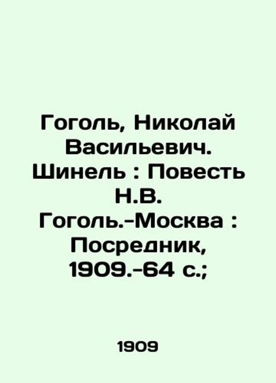 "Gogol, Nikolai Vasilyevich. Coat: The Tale of Nikolai Gogol-Moscow: Mediator, 1909.-64 p.;/Gogol, Nikolay Vasilevich. Shinel: Povest N.V. Gogol.-Moskva: Posrednik, 1909.-64 s.; Gogol, Nikolai Vasilyevich. Coat: The Tale of Nikolai Gogol-Moscow: Mediator, 1909.-64 p.;. We have thousands of titles and often several copies of each title may be available. Please feel free to contact us for a detailed description of the copies available. SKUbd-fff0dd3ac38d7bc5."
