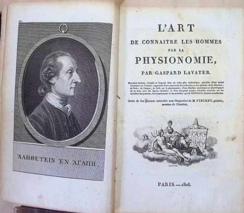 Nouvelle édition corrigée et augmentée, après l'originale française parue de 1781 à 1803 en 4 Vol. in folio. Edition richement illustrée de 600 gravures en taille-douce hors-texte, majoritairement en pleine page, exécutées sous l'inspection du peintre Vincent, dont 82 tirées en sanguine, certaines dépliantes. Demi toile grise. Dos lisses janséniste avec pièces de titre de papier. Quelques coiffes fragiles. Plats de papier frottés. Exemplaire à toutes marges, reliure modeste de travail ou d'attente de l'époque. Une déchirure sans manque et sans atteinte à la gravure sur le frontispice du tome, quelques planches en parties désolidarisées, quelques rousseurs sans gravités. Le "Lavater" s'inscrit dans la lignée de tous les grands ouvrages de physiognomonie parus jusqu'alors, il en est non seulement l'aboutissement scientifique (débarrassant la discipline de tout son fatras ésotérique) mais il brille par son illustration exemplaire (Lavater, ami de Fussli a particulièrement soigné les dessins). On sait l'importance qu'aura cet ouvrage, non seulement chez les écrivains comme Balzac, mais surtout sur les théories criminalistiques, et notamment sur Lombroso. - Photographies et détails sur www.Edition-Originale.com -