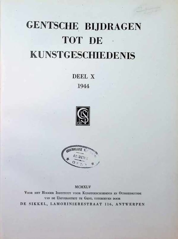 Antwerpen, De Sikkel 1945 272pp.met zw/w ills., 25cm., in de reeks "Gentsche Bijdragen tot de Kunstgeschiedenis" volume 10 (1944), gecart. uitgeversband met linnen rug, zeer goede staat, S88625