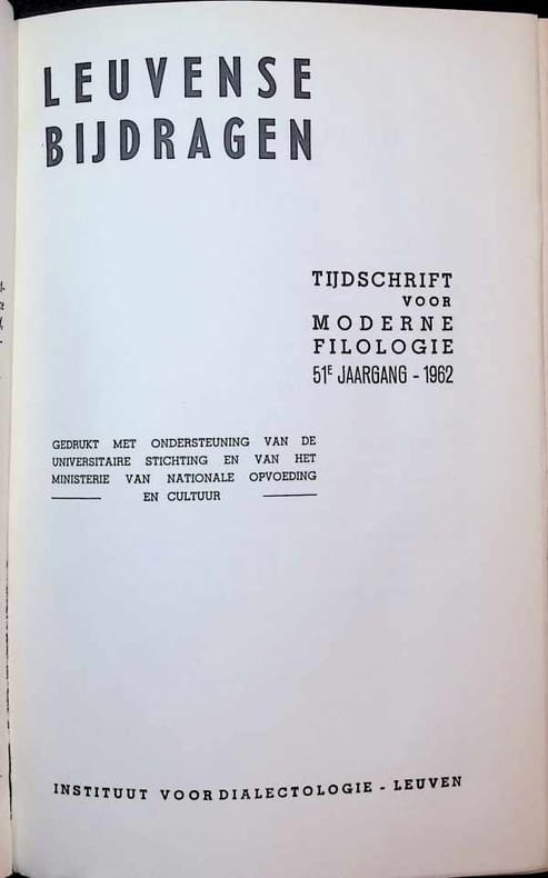 Leuven 1962 Instituut voor dialectologie Hardcover