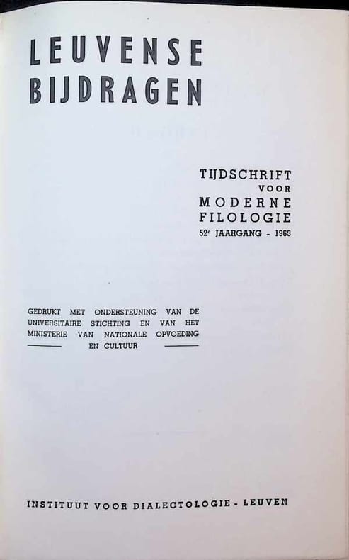 Leuven 1963 Instituut voor dialectologie Hardcover