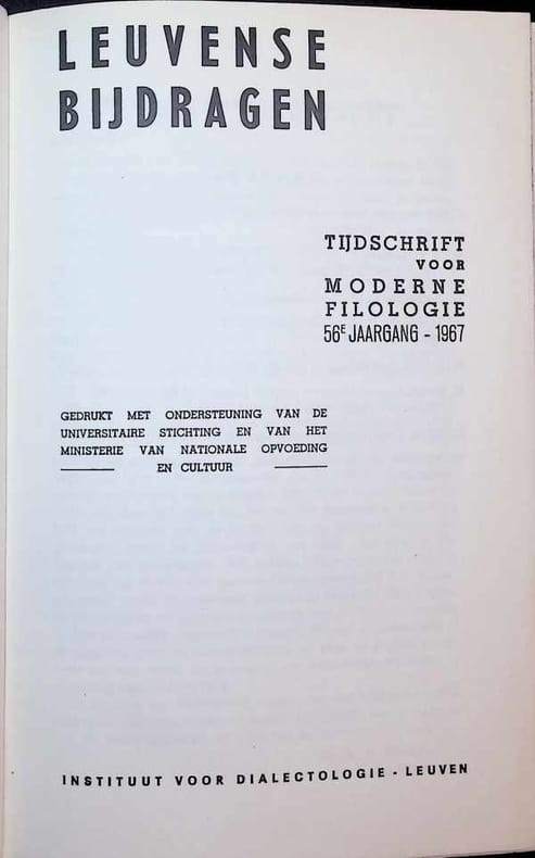 Leuven 1967 Instituut voor dialectologie Hardcover