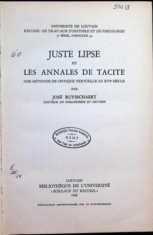 Louvain, Bibliothèque de l'Université 1949 xviii + 222pp., br.orig., état de neuf, dans la série "Université de Louvain - Recueil de travaux d'histoire et de philologie" 3e série fasc.34, K31093