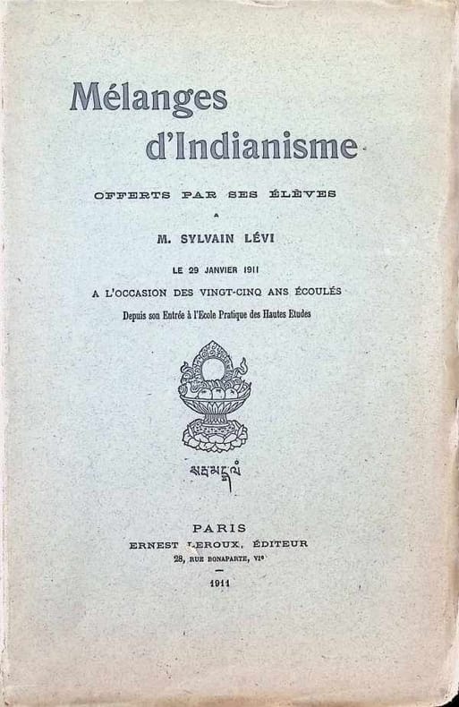 Couverture souple original de l'éditeur, 26 x 17 cm, 345 pp. non couper ( couper irrugulièrement ) , français, état du livre: Bon. Offerts a Sylvain Lévi le 29 janvier 1911 a l'occasion des vingt-cinq ans écoulés, depuis son Entré à l'école Pratique des Hautes Etudes
