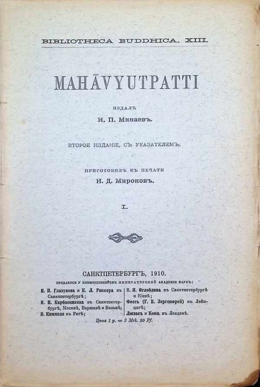 s.l., s.d. [probably 1962] 338 + 7pp., 22cm., this is probably the 1962-edition published in Tokyo by the Suzuki Research Foundation (reprint of the 1916-1936 Tokyo-edition), cloth, dustwrapper, very few foxing on edges, else G, [contains the Tibetan-Sanskrit index to the Mahavyutpatti -a quadrilingual glossary of Buddhist terminology in Sankrit, Tibetan, Chinese and Japanese], [important reference work], X71839