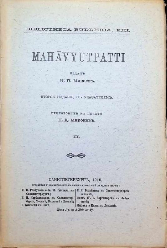 s.l., s.d. [probably 1962] 338 + 7pp., 22cm., this is probably the 1962-edition published in Tokyo by the Suzuki Research Foundation (reprint of the 1916-1936 Tokyo-edition), cloth, dustwrapper, very few foxing on edges, else G, [contains the Tibetan-Sanskrit index to the Mahavyutpatti -a quadrilingual glossary of Buddhist terminology in Sankrit, Tibetan, Chinese and Japanese], [important reference work], X71839