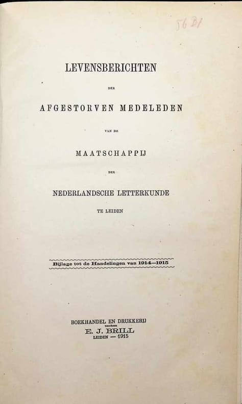 Leiden 1915 E. J. Brill Hardcover 1st Edition