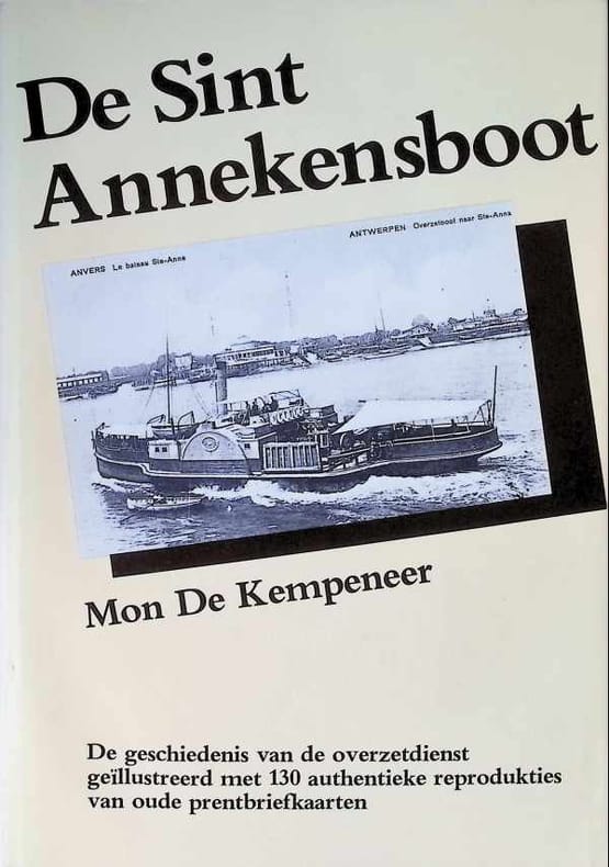 De Sint Annekensboot, een studie van de Antwerpse overzetdienst geïllustreerd met reprodukties van 130 oude prentbriefkaarten hard cover, blauw linnen band met goudkleurige opdruk van titel op voorzijde en rug van het boek, 118 blz met 130 foto's in z/w 250 mm x 175 mm , in goede staat