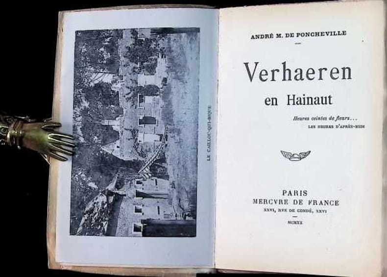 . Mercure de France Mercure de France Paris, 1920, in-16 broché, 221pp., en frontispice une photographie du Caillou-qui-Bique, maison de campagne de Verhaeren dans le Hainaut. Petites salissures sur le second plat de couverture sinon bon état. Edition originale, exemplaire du premier mille.
