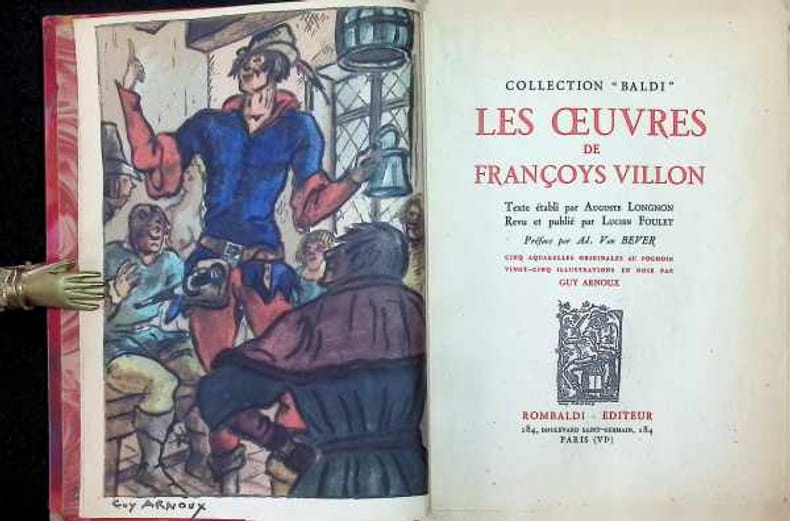 Le Grand Chêne Henri Kaeser 1948 Lausanne, aux éditions du Grand-Chêne, Henri Kaeser éditeur, 1948. Exemplaire numéroté, sur vergé. In-8 broché de 269 pp., toutes pages encadrées de filets rouges. Index des noms et glossaire in fine. Couverture à rabats. Très bon état, bien frais et non coupé. Texte intégral des oeuvres de Villon.