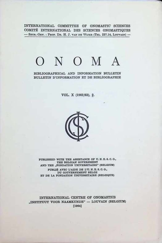Louvain 1964 International Centre of Onomastics Soft cover 1st Edition