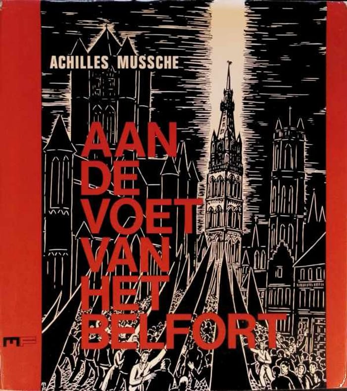 Aan de voet van het Belfort. 345 x 247 mm, hard cover stofwikkel en schuifdoos,225 blz, prachitge illustraties Van Frans Masereel, zeer goede staat als nieuw