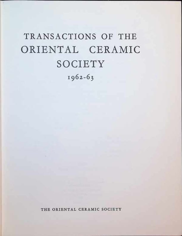 London 1964 The Oriental Ceramic Society Hardcover 1st Edition