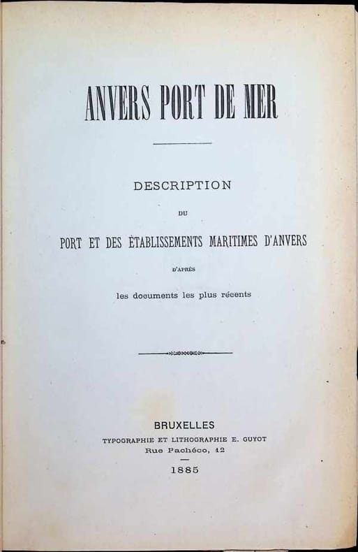 Reliure demi-cuir rouge, le dos ( peu abîmé ) avec 5 pinces et decoration en or, la couverture avec l'écusson doré de la ville d'Anvers , 23 x 16 cm, 316 pp., français, 1ère édition, illustrations, état du livre: Bon.
