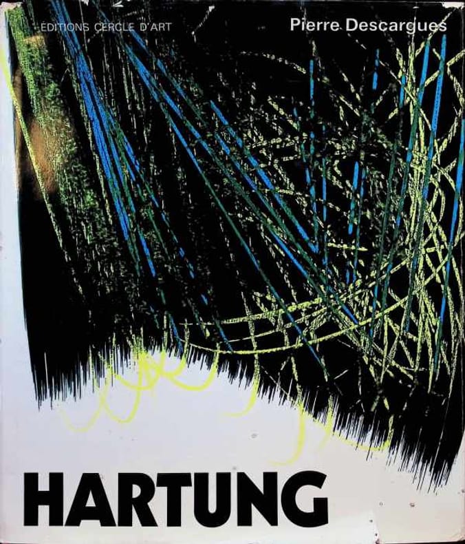 Né à Leipzig en 1904, Hans Hartung affirme très tôt une écriture du trait - « livres d'éclairs » de l'enfance - qui nourrira sa grammaire gestuelle. Formé à Leipzig, Dresde puis Paris (séjours au Louvre, passages chez Lhote et Léger), il s'oriente dès 1922 vers l'abstraction, expérimente aquarelles et fusains, puis construit sa méthode : spontanéïté calculée et mise au carreau jusqu'en 1960. Exilé à Paris sous le nazisme, proche de Hélion, Domela, Miró, Calder et Julio González (dont l'atelier le marque durablement), il sert dans la Légion étrangère ; blessé en 1944, amputé, il reprend après-guerre une oeuvre de signes vifs, d'encre et de pastel, bientôt transposés sur de larges toiles. Après plusieurs rétrospectives majeures (Documenta, en 1955, 1959 et 1964) et un Grand Prix de Peinture à la Biennale de Venise en 1960, il adopte des peintures vinyliques et des grattages qui libèrent son geste sur grand format. Installé à Antibes avec Anna-Eva Bergman, il bâtit maison et ateliers en poursuivant l'extension d'un catalogue systématique de son oeuvre. Leur maison-atelier abrite depuis 1994 la Fondation Hartung-Bergman. Son accession à l'Académie des beaux-arts, en 1977, coïncide avec la publication de cette importante monographie, publiée aux Editions Cercle d'Art. L'ouvrage est ici offert à David Beccaria, collectionneur d'art et figure niçoise où sa boutique - située au 2, cours Saleya - accueillait hôtes et artistes, notamment ceux de l'École de Nice : ce n'était pas une galerie d'art, mais... un glacier !