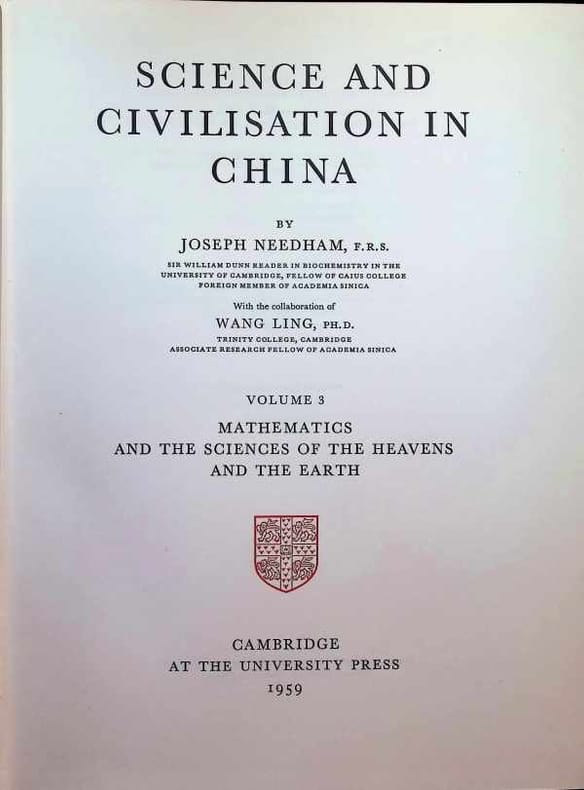 Science and civilisation in China. Volume 3, mathematics and the sciences of heavens and the earth. (Cambridge : University Press, 1975). [M.C.: Chine, histoire des sciences]