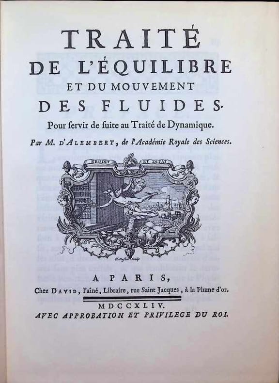 ---- EDITION ORIGINALE ---- BEL EXEMPLAIRE ---- EN FRANCAIS DANS LE TEXTE N° 147 ---- "In this work D'Alembert used his principle to describe fluid motion, treating the major problems of fluid mechanics that were current... D'Alembert first treatise had been devoted to the study of rigid bodies ; now he was giving attention to the other class of matter, the fluids. He was actually giving an alternative treatment to one already published by Daniel Bernouilli, and he commented that both he and Bernouilli usually arrived at the same conclusions. He felt that his own method was superior... The present work applies D'Alembert principle to fluids". (DSB I p. 113) ---- Norman N° 33 - Bibliotheca mechanica - Honeyman N° 805**1470(0)/ARM3-1474(0)/ARM3-1469/i