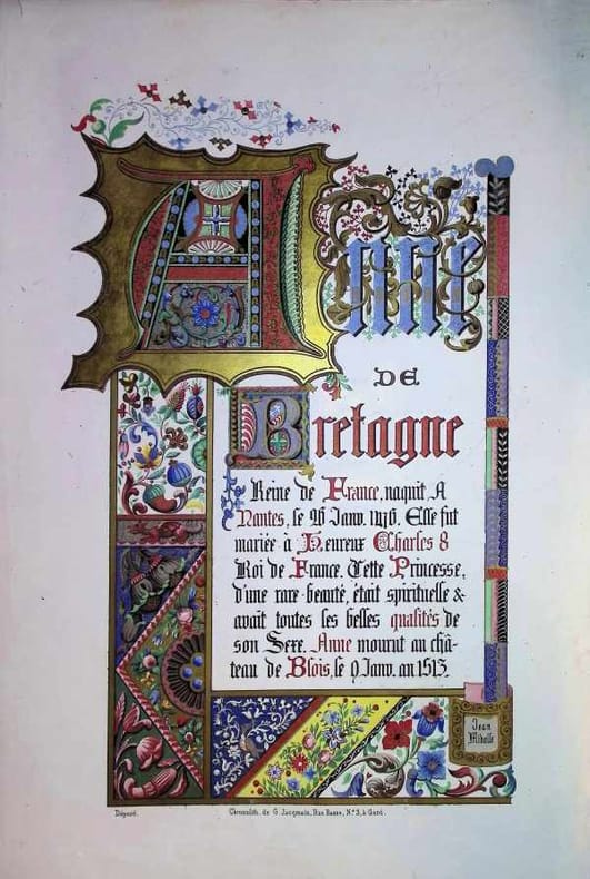 Sans reliure, 47 x 32,5 cm, 25 pp., français, 1ère édition, illustrations, état du livre: Très bon L'artiste Jean Midolle était un maître calligraphe et graphiste qui a travaillé à Genève, Mulhouse, Saint-Gall et Strasbourg, et une figure de proue du renouveau romantique des arts manuscrits. Gand, G. Jacqmain, 1846. Un grand et fort volume (47 x 32,5 cm) composé d'une page de titre et de 24 planches en chromolithographie imprimées sur papier cérusé (dit carton porcelaine). Non relié. Les feuilles de carton porcelaine. Ces impressions, entre 1835 et 1860 environ, étaient surtout utilisées comme support commémoratifs, commerciaux ou publicitaires. Il s'agit ici d'un Abécédaire composé par de beaux spécimens de pages inspirées de manuscrits des XIVe et XVe siècles, très colorées, aux bordures historiées ornées de fleurs et d'animaux fantastiques. Les planches présentent une courte biographie de personnages historiques dont Anne de Bretagne, Édouard d'Angleterre, Gustave-Adolphe de Suède, Louis XIV, Marie de Médicis, le peintre anversois Quintin, Richard Coeur de Lion, Sully, Turenne. La page de titre est souillée. Certaines pages présentent des déchirures et/ou de petites pertes de papier. Il s'agit néanmoins d'un très bon exemplaire. [Cette description peut avoir été traduite par une IA.]