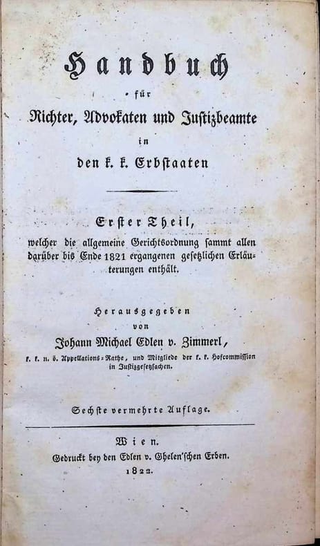 Wien 1822 Johann Michael Edlen Zimmer' Half-Leather (Hardcover) 1st Edition