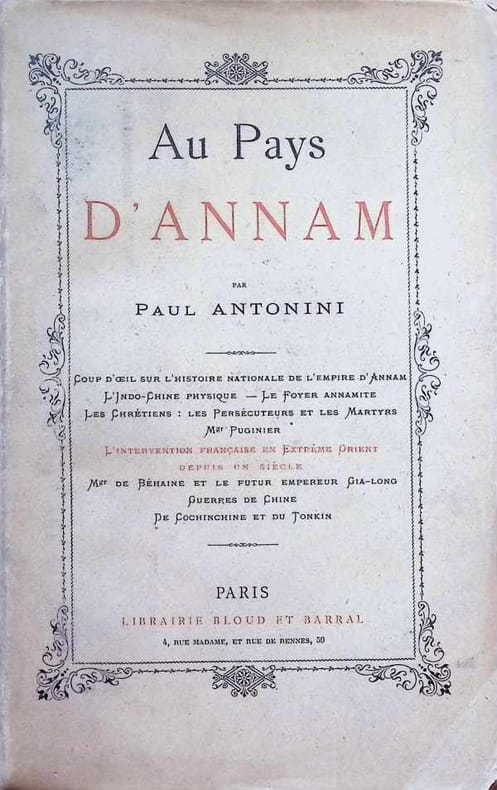 Préface d'Henri Cordier, membre de l'Institut. Table des Matières: Sources de l'Histoire moderne de l'Annam - La Dynastie des Lê: les Seigneurs du Nord et du Sud, leur rivalité, leurs luttes - les Européens en pays d'Annam - Le pays d'Annam de 1674 à 1775 - La Révolte des Tây-sorn - L'Evêque d'Adran - Le Triomphe des Nguyèn.