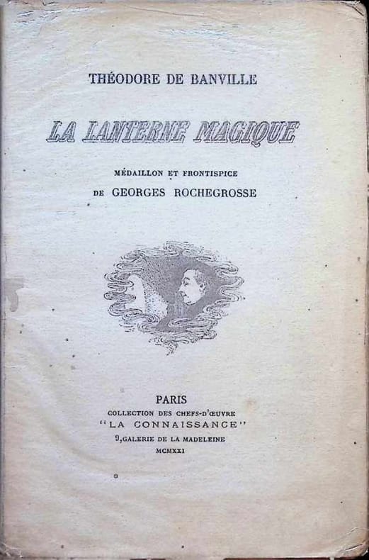 Couverture souple originale de l'éditeur avec médaillon de Georges Rochegrosse, 20 x 13 cm, 225 pp., français, frontispice de Georges Rochegrosse, état du livre : Très bon, ex.nr. 592. La Lanterne Magique de Théodore de Banville est le 24e volume de la 'collection des chefs-d'oeuvre'. [Cette description peut avoir été traduite par une IA.]