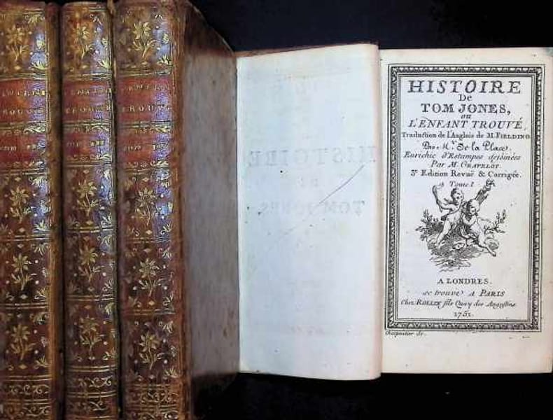 Traduction nouvelle par Defauconpret, précédée d'une notice biographique et littéraire sur Fielding, par Walter Scott.Paris, Furne 1836. Enrichi de 4 gravures hors-texte de Johannot et 2 vignettes de titre.Jolie reliure demi-veau aubergine signée Simier. Dos à nerfs orné et doré. Couvertures illustrées conservées. Rares rousseurs. Très bon état. Format in-8°(22x14).