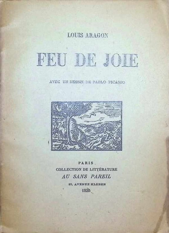 Paris, Au Sans Pareil, 1920. 186 x 138 mm, (4) ff. : blanc, faux-titre, titre, 1 ill. n/b de Pablo Picasso et (22) ff. poèmes de Louis ARAGON, (1) f. : achevé d'imprimer. Broché, première de couverture illustrée d'une vignette répétée sur la page de titre, trace de pli angulaire à la première et quatrième de couverture, traces d'usage, couvertures et dos insolés, le papier est bruni, 1 trace de pli angulaire à 1 feuillet. Achevé d'imprimer du 10 décembre 1919, date de 1920 sur page de titre, exemplaire non-justifié sur papier vergé bouffant. Bon exemplaire.