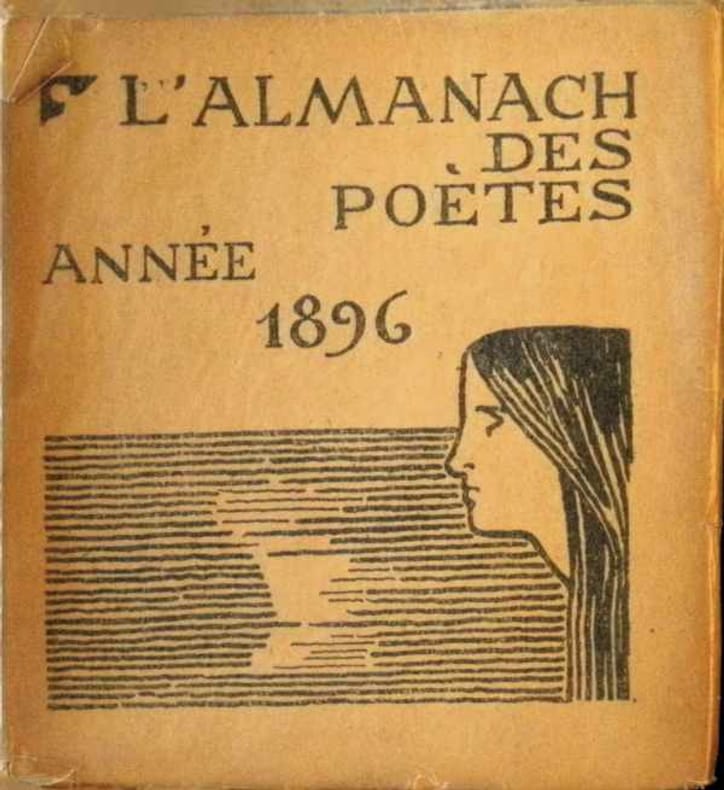 Première année de cet almanach symboliste qui en compta 3, tiré sur vergé de Hollande et orné d'un dessin en noir en couverture et de 24 dessins de Auguste Donnay tirés en bistre.Calendrier et 12 poèmes - un pour chaque mois - de Robert de Souza, André Fontainas, André Gide, A.-Ferdinand Herold, Albert Mockel, Francis Vielé-Griffin, Gustave Kahn, Saint-Pol-Roux, Henri de Régnier, Adolphe Retté, Charles Van Lerberghe et Emile Verhaeren.