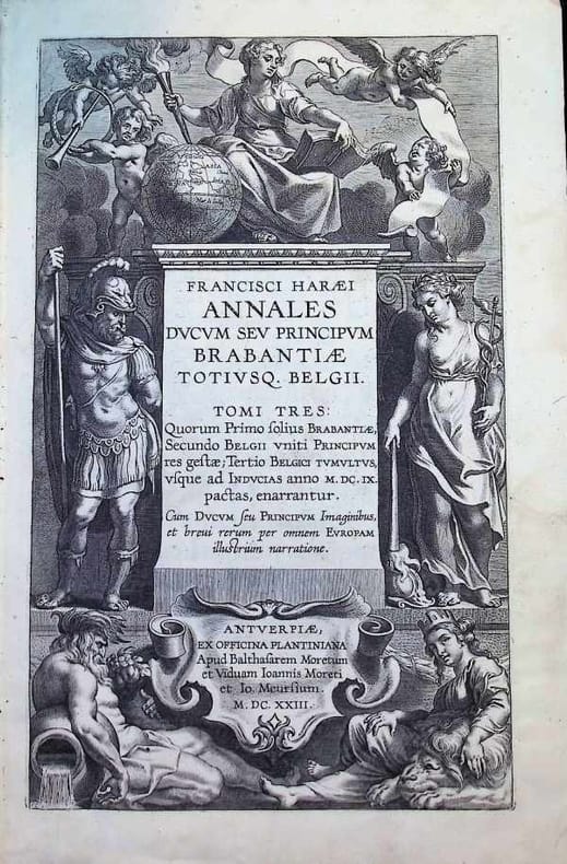 Demi-Cuir (Reliure rigide) Reliure du 19e siècle, 33 x 22 cm, vol. 1/2 : [36], 707, [117] p. Vol. 3 : [8], 678, [118] p. pp., Latin, 1ère édition, 2 volumes, Illustrations, état du livre : Très Bon Contenu : Le livre se compose de trois volumes (tomi tres) : 1. Volume 1 : Couvre l'histoire du duché de Brabant lui-même. 2. Volume 2 : Se concentre sur les souverains communs des Pays-Bas unis. 3. Volume 3 : Décrit la Révolte néerlandaise (les ""Tumultes belgiques"") de 1560 jusqu'à la Trêve de Douze Ans en 1609. Les gravures de l'édition de 1623 des Annales ducum seu principum Brabantiae totiusque Belgii ont été principalement exécutées par Cornelis Galle l'Aîné et Lucas Vorsterman I. Les contributions artistiques pour l'oeuvre comprennent : o Designers : L'artiste éminent Peter Paul Rubens a conçu les pages de titre allégoriques pour les Volumes 1 et 3. D'autres illustrateurs associés aux 44 portraits de l'oeuvre incluent Otto van Veen et Joannes Baptista Vrients. o Graveurs : o Cornelis Galle I : A gravé la page de titre allégorique pour le Volume 1. o Lucas Vorsterman I : A gravé la page de titre allégorique pour le Volume 3. o Les 44 portraits en pleine page des ducs et princes à travers les volumes ont été créés par ces graveurs et potentiellement d'autres graveurs travaillant au sein du cercle de l'Imprimerie Plantin. [Cette description peut avoir été traduite par une IA.]