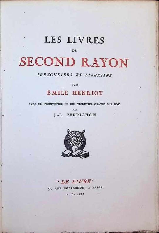 P., Le Livre, 1926, pt in-8°, 398 pp, avec un frontispice et des vignettes gravés sur bois par J.-L. Perrichon, biblio, broché, bon état