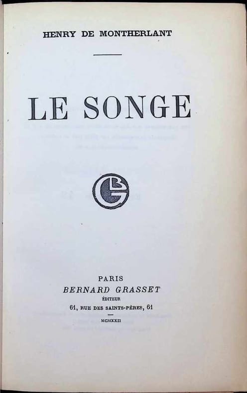 ed. de Minuit 1982 et 1990 Monsieur Songe, ed. de Minuit, 1982, in-12 br., « Pendant une vingtaine d’annees je me suis delasse de mon travail en ecrivaillant les histoire de monsieur Songe. Les voici reunies et mises au point en un volume qui est, je le repete, un divertissement ». 1er mille, envoi, Du nerf, ed. de Minuit, 1990, in-12 br. etroit, où l’on retrouve Monsieur Songe.. ça se finit comme ça : « On ne connait pas la decision de monsieur Songe mais on espere qu’il finira paisiblement », 1er mille, envoi, les deux volumes