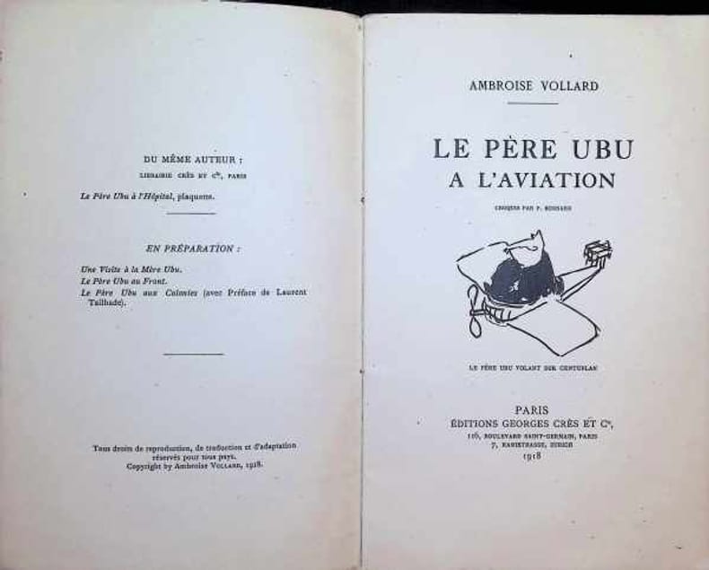 P., Georges Crès, 1918. In-8, 16pp., croquis par P. Bonnard, br., couverture illustrée: le père Ubu volant sur Centuplan.