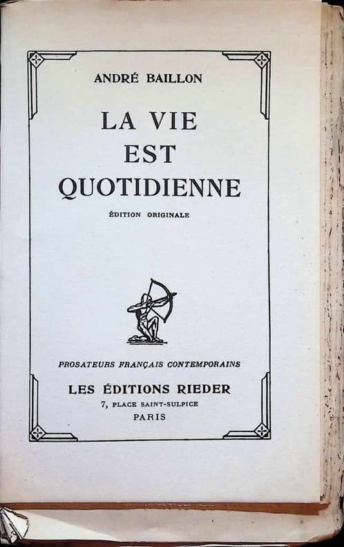 Paris, F. Rieder, 1929. 12 x 19, 229 pp., reliure dos/coins toilés, couverture conservée, bon état.