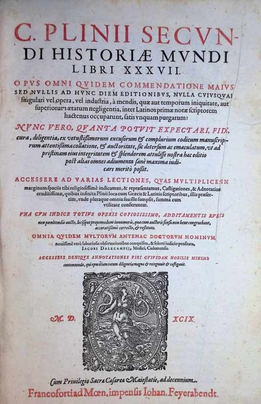Vellum (Reliure rigide) couvertures estampées à l'aveugle, la reliure est encore ferme et solide, le dos et les couvertures sont légèrement souillés, 420 x 26 cm, (36) 904 (194) pp., Latin, état du livre : Très Bon Les 37 livres de l'Historiae mundi forment un énorme inventaire de connaissances de l'Antiquité. Pline lui-même prétendait avoir rassemblé 20 000 faits provenant de plus de 2 000 sources. Voici la répartition générale du contenu : Livre 1 : Table des matières et liste extensive de sources (autorités). Livre 2 : Le monde physique : astronomie, météorologie et cosmographie. Livres 3-6 : Géographie et ethnographie : descriptions de pays, mers et peuples (de l'Europe à l'Asie). Livre 7 : Anthropologie : humains, physiologie et limites des capacités humaines. Livres 8-11 : Zoologie : animaux terrestres, poissons, oiseaux et insectes. Livres 12-19 : Botanique : arbres, fleurs, agriculture et horticulture. Livres 20-32 : Pharmacologie et médecine : les propriétés curatives des plantes et des substances animales. Livres 33-37 : Minéralogie et métallurgie : métaux, roches et pierres précieuses, y compris leur utilisation dans les arts visuels. L'oeuvre est connue pour son mélange d'observation scientifique avec des curiosités et de la mythologie (comme des récits de monstres et de phénomènes naturels merveilleux). [Cette description peut avoir été traduite par une IA.]