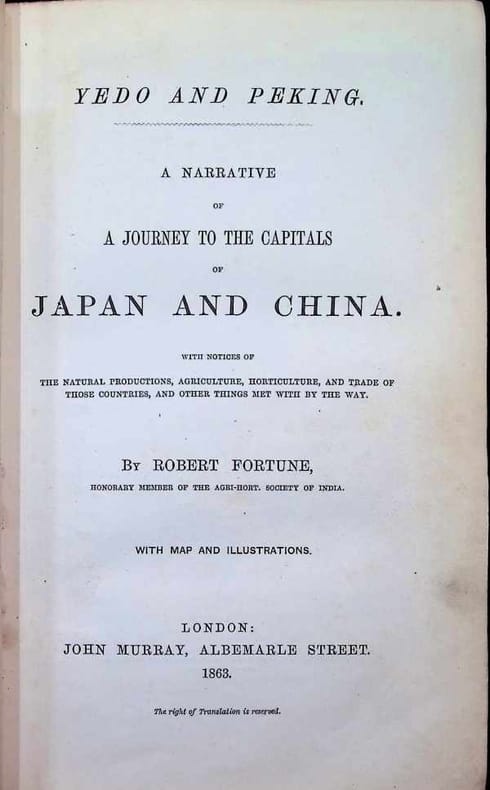 Half-Leather (Hardcover), 22 x 15 cm, XV + 395 + 15 illustrations pp., English, 1st Edition, Illustrations, book condition: Very Good. The book documents Fortune's travels from 1860 to 1862, a pivotal era when Japan was first reopening its borders to Westerners after centuries of isolation. . Japan (Yedo): Fortune describes his arrival in Nagasaki and his journey to Yedo(modern-day Tokyo). He provides rare, early Western observations of Japanese culture, "strange" customs, and the "very beautiful" landscape.rnChina (Peking): The narrative continues to Peking (Beijing), where he offers detailed sketches of the city's ramparts, street life, and the various foreign embassies established after the Second Opium War.rnBotanical Insights: As a botanist, Fortune fills the text with expert observations on agriculture, horticulture, and trade, specifically focusing on tea, silk, and local flora. rn