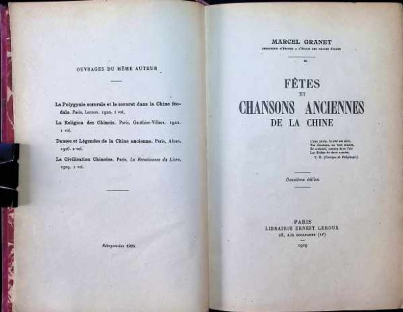 "1929. Paris Librairie Ernest Leroux 1929 - Broché 17 cm x 25 cm 301 pages - Texte de Marcel Granet - Une photo noir & blanc hors-texte - 2e édition - Bon état"
