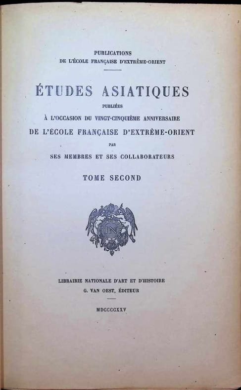 2 tomes d'Etudes Asiatiques en 1 seul volume. Les articles sont signés des grands noms de l'E.F.E.O.:Marchal - Parmentier - Pelliot - Maybon - Maspero - Cabaton - Finot - Groslier