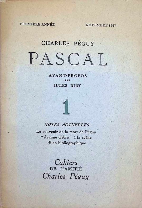 Paris, Cahiers de l'Amitié Charles Péguy, Première Année, N°1, Novembre 1947, grand in 8° broché, 88 pages.