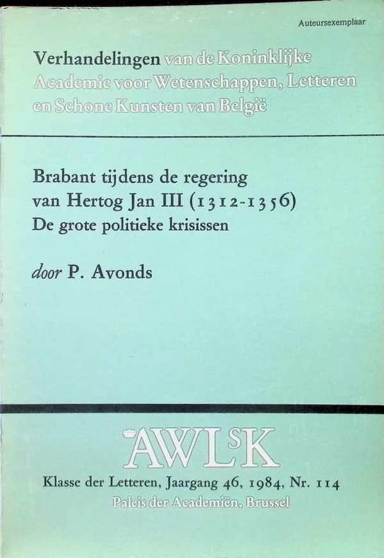 Brabant tijdens de regering van hertog Jan III (1312-1356) : Land en Instellingen (Verhandelingen van de Koninklijke Academie voor ... België, Klasse der Letteren) Softcover, 260 x 180 mm, 312 blz zeer goede staat