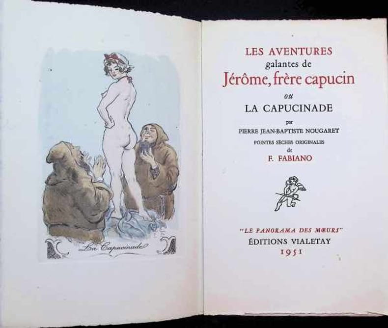 Paris Editions Vialetay 1951 in 8 (22,5x14,5) 1 volume broché, couverture rempliée, 125 pages [3], chemise et étui décorés de l'éditeur. Ouvrage illustré de pointes-sèches originales hors-texte en couleurs de F. Fabiano. Cuivres tirés sur les presses à bras de Manuel Robbe. Mise en couleurs réalisée par Edmond Vairel. Collection '' Le panorama des moeurs ''. Tirage limité à 452 exemplaires numérotés, celui-ci un des 323 exemplaires numérotés sur papier Lana pur chiffon à la forme. Très bel exemplaire ( Photographies sur demande / We can send pictures of this book on simple request )