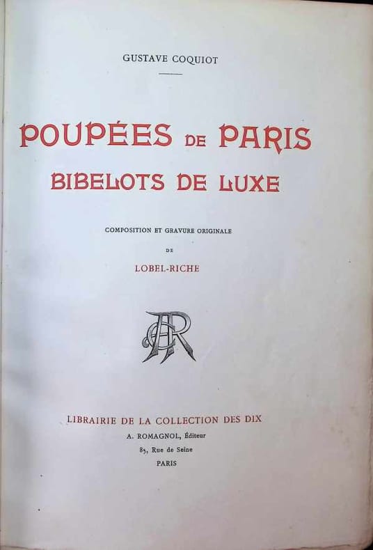 [Curiosa] [Alméry LOBEL-RICHE (1877-1950)] Gustave COQUIOT (1865-1926). POUPÉES DE PARIS. BIBELOTS DE LUXE. Composition et gravure originale de Lobel-Riche. Librairie de la collection des Dix. A. Romagnol, éditeur. 85, rue de Seine, Paris. 1912. Broché sous couverture rempliée, chemise et étui. Dimensions des feuillets : 31 × 23 cm. Une des meilleures illustrations de Lobel-Riche. Elle comprend quarante eaux-fortes, dont trente-huit à pleine page, représentant la vie de Parisiennes de mœurs légères. Exemplaire nominatif sur Japon, comportant une suite en noir (sur vélin) avec remarques. Sur un feuillet liminaire, après « Exemplaire imprimé pour », l’éditeur a écrit : « Monsieur et Madame / G. C[…] / souvenir amical / de l’éditeur / Romagnol ». Couverture manipulée et inégalement fatiguée, avec petites taches sur le premier plat, marque de pliure sur le même plat, dos avec petits manques en tête et queue à la jonction avec les plats, second plat inégalement insolé, toile de la chemise légèrement effilochée, fente à l’étui. Très bel état intérieur.