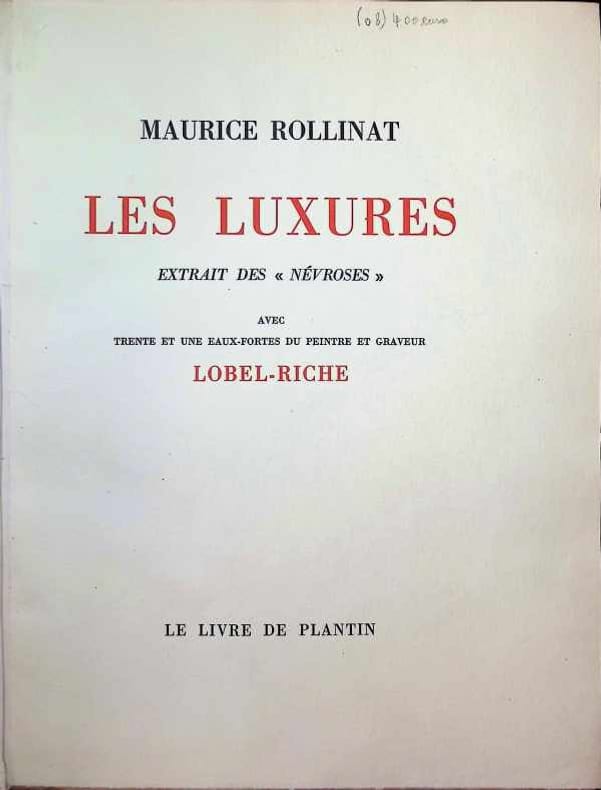 Ouvrage illustré par LOBEL-RICHE de 31 eaux-fortes originales. Portrait de Rollinat en frontispice. Tirage limité à 210 exemplaires numérotés. Un des 160 réimposés sur vélin contenant l'état en noir avec remarques (sous chemise) et l'état terminé dans le texte (n° 80). Exemplaire en parfait état. Photos sur demande.