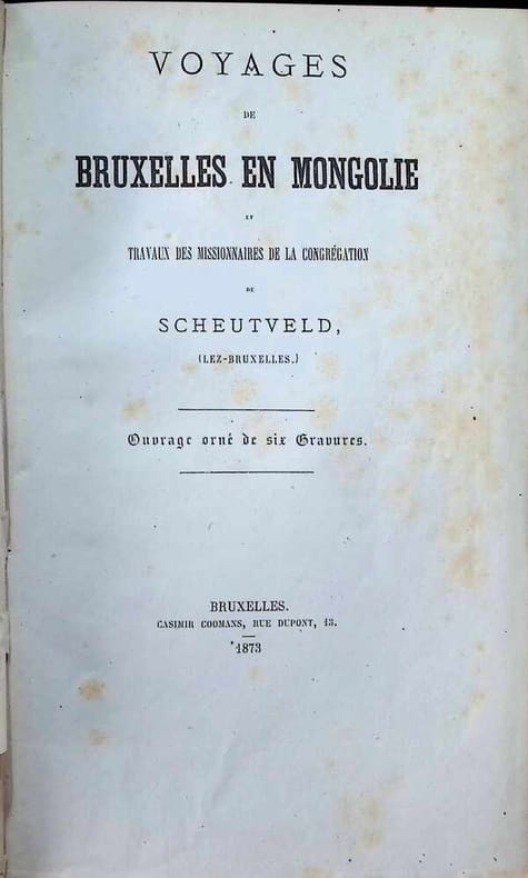 Bruxelles, Coomans 1873 196pp. + frontispice (portrait du fondateur Th. Verbist) et 5 planches double-page hors-texte, 22cm., reliure cart. (qqs. traces d'usage), dos en toile noir avec titre doré, bon état, [Relié avec un autre ouvrage: NN, Les missionnaires belges en Mongolie. Coup d'oeil sur l'établissement du christianisme a Pekin et en Mongolie, Bruxelles, Goemaere, 1866, 63pp.], R99383