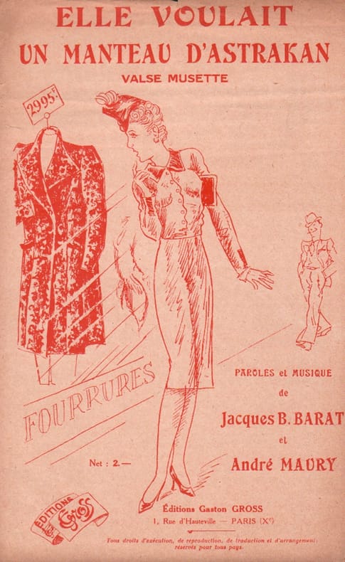 Partitions sur Paris Paname,Partitions sur la Prostitution , Cocottes , Courtisanes , Gigolettes,Partitions sur la Mode et accessoires Gross Gaston 1949 approx.