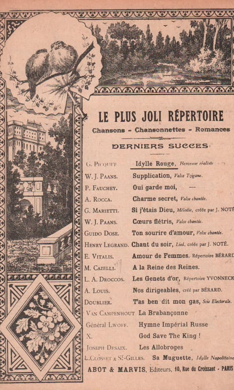 Partitions sur le Mauvais garçon,Partitions Crimes et criminels Abot et Marvis 1912 approx.