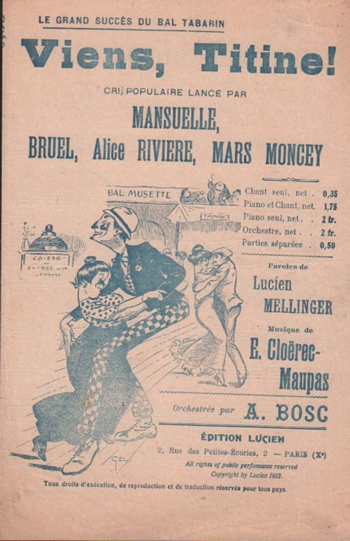 Partitions sur les Guinguettes et bal musette,Partitions sur la Danse Lucien 1913 approx.