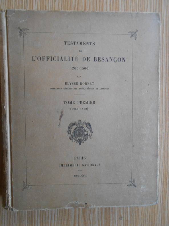 Couverture rigide cartonnée, livre relié Format in-4 : 23,5 par 29 cm Tome 1 : 1265-1400 551 pages numérotées Imprimerie Nationale 1902