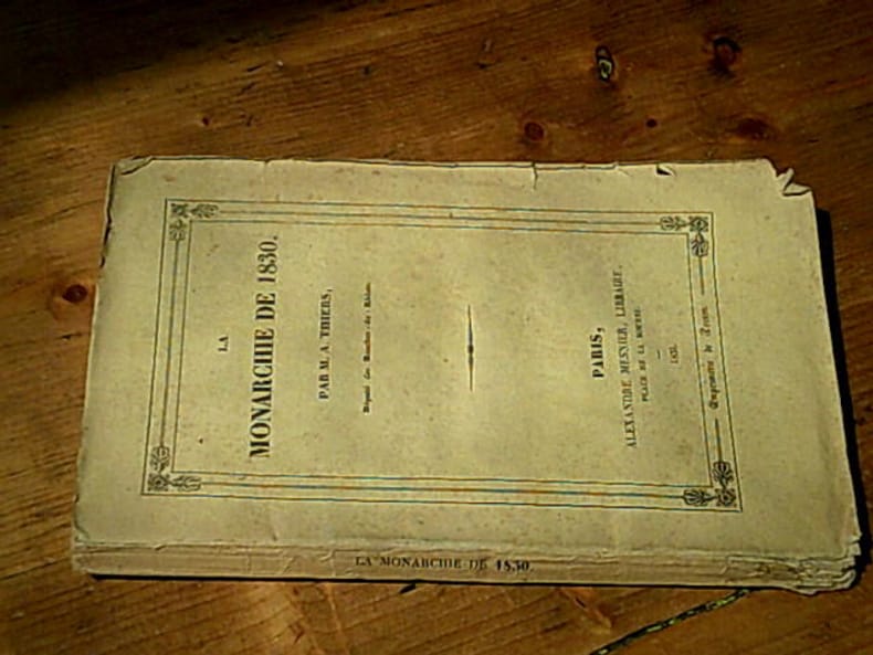 Édition originale. Plaidoyer pour la Monarchie de Juillet de Louis-Adolphe Thiers acquis à la monarchie parlementaire, rédacteur en chef du National et l'un des principaux acteurs de l'avènement de Louis-Philippe. En récompense de ses services, Thiers fut nommé conseiller d'État et atttaché au département des finances. 3 feuillets restaurés, sans perte de texte. Escoffier 893 ; Yvert, Politique libérale, 65.